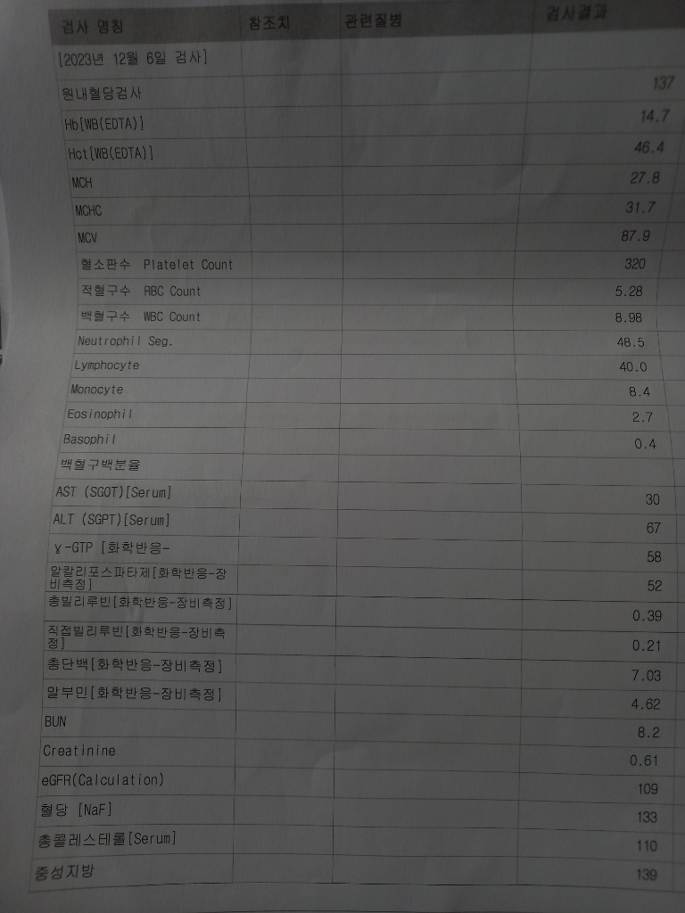 안녕하세요. 이욱현 의사입니다. TSH 수치가 '상승'해 있으며 TSH수차가 '상승'해 있으면 대부분의 경우에는 갑상선 기능 저하증입니다. 공복혈당이 126 이상이 2회 나오면 당뇨로 진단하며 평균 당 수치가 높은 지 여부는 당화혈색소 수치로 알수 있는데 올리신 사진에서는 결과가 없습니다.