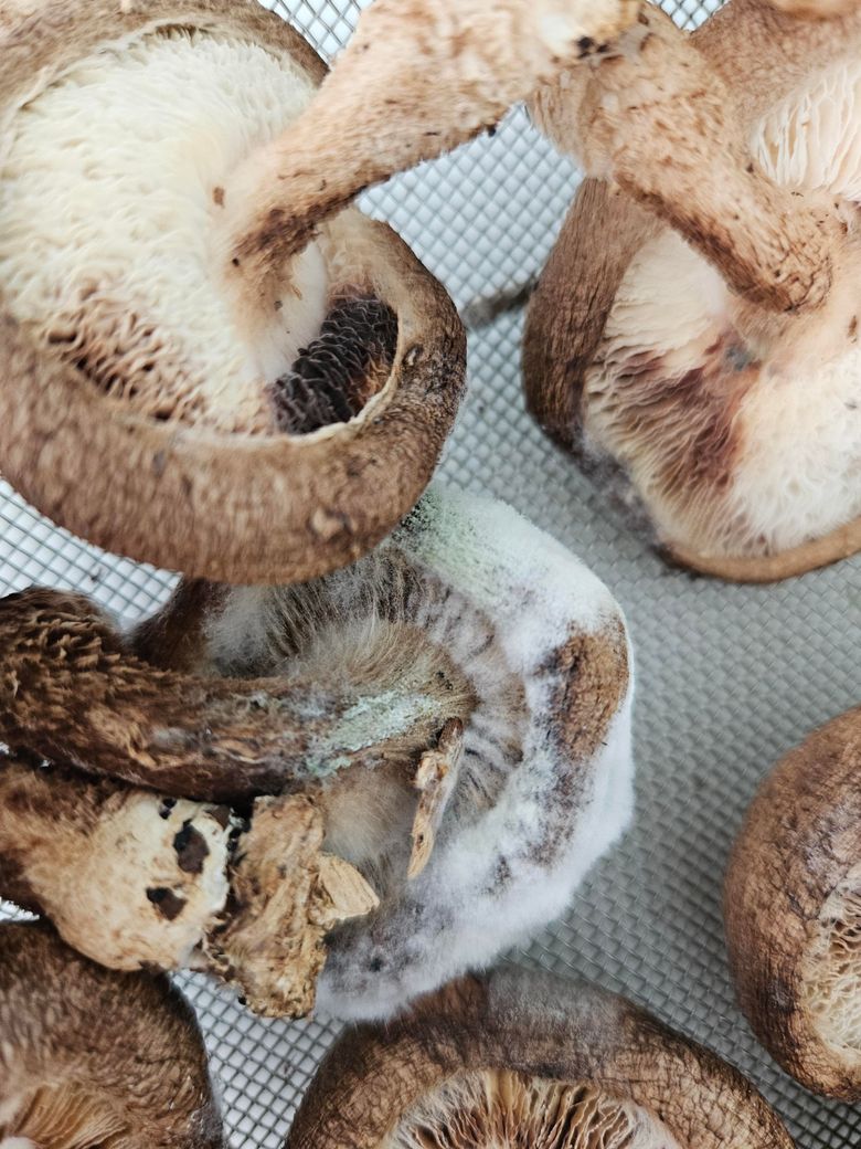 버섯을 말리고 있던 중 버섯 하나에 곰팡이가 하얗게 폈는데 버려야하는지 먹어도 되는 건지 궁금합니다.