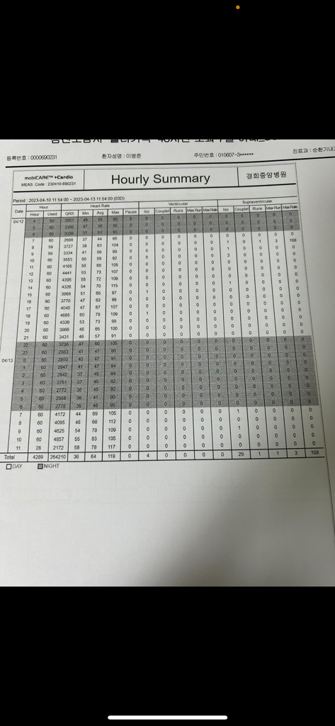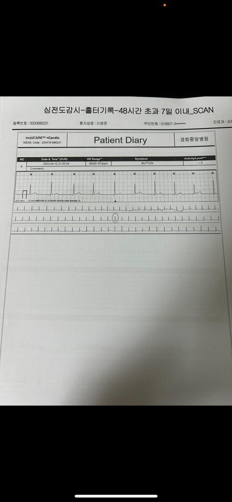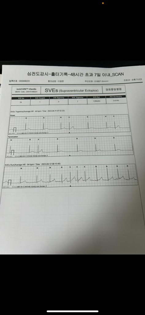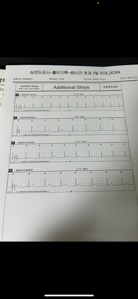 4월초에 흉부CT,72시간홀터,심전도,엑스레이,피검사 정상소견