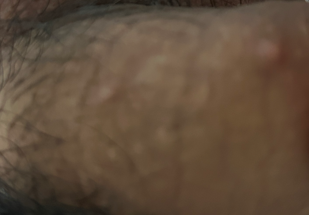 사진이 흐려서 잘 보이지 않지만 모낭염과 같은 피부염이 발생한 것으로 추정되며 성병을 의심하기엔 이른 시기라고 볼 수 있으니 검사를 원하시는 경우 가까운 비뇨의학과를 방문해 확인해보시기 바랍니다.