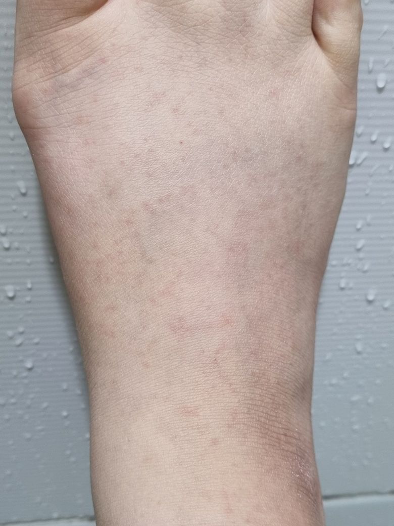 언제부터 생긴건진 모르겠는데 오늘 샤워 후 처음 발견했습니다. 손이랑 발은 연한 빨간색깔에 작은 것들이 여러개 올라왔고, 손이랑 발등이랑은 좀 다르게 생긴거같은데 무릎뒤, 허벅지가 제일 심한데, 연한색도 있지만 중간중간 아주빨간 피가 고인것같은 것도 여러개 있습니다.