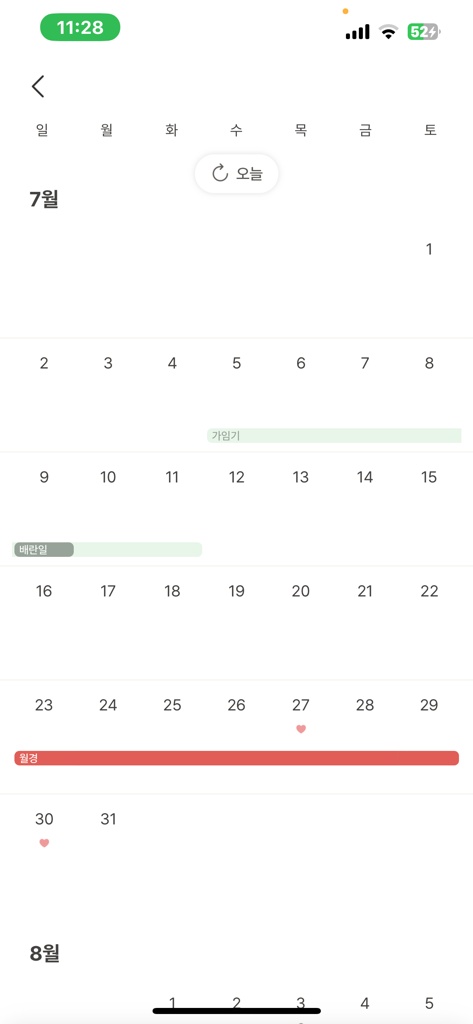 생리 5일차에 한번 끝나고 다음낳에 한번입니다