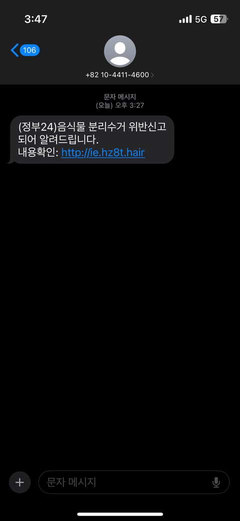 정부24 음식물 쓰레기 문자 링크 스미싱