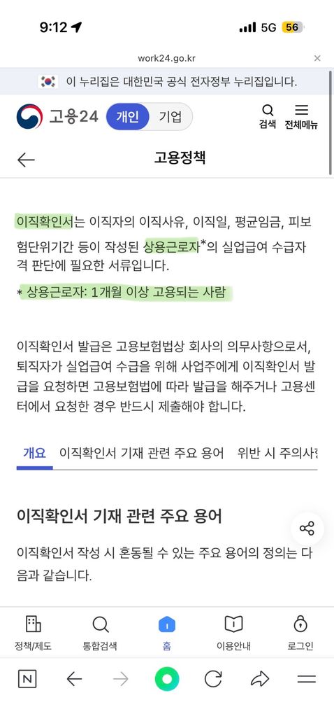 < 이직확인서는 상용근로자*의 실업급여 수급자 격 판단에 필요한 서류입니다.