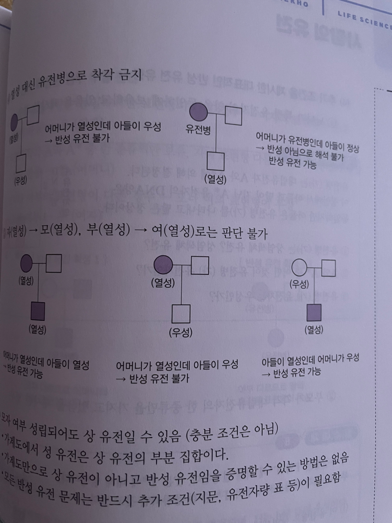 그래서 어머니의 어떤 유전 형질이 열성 표현형으로 발현되는데 아들이 우성 표현형을 가지면