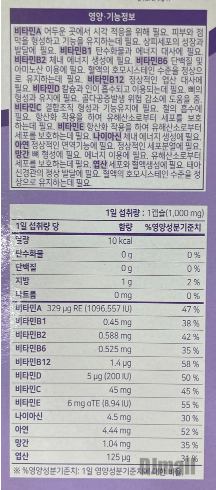 멀티비타민 + 미네랄(약 이름 : 네이처픽 멀티비타민 미네랄) 성분의 약을