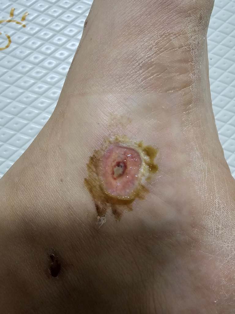 상처가 꽤 깊어서 치유에 오랜시간이 필요할 것으로 보입니다만 상처 자체는 분홍빛이 도는 혈류가 좋은 상태이고 감염증은 없습니다. 집에서 관리하기가 걱정스러우시면 가까운 피부과나 정형외과에서 한 번씩 확인받아보시기 바랍니다.