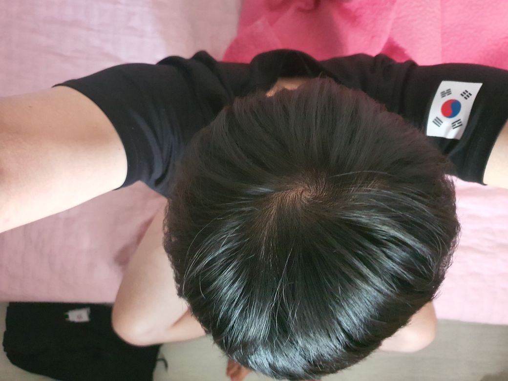 이전 상태와 비교해보는게 더 정확하겠지만 어찌됐던 지금 상태만 봐서는 정수리 탈모를 의심할만한 모습은 아닙니다.