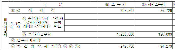 이 경우 종전근무지의 근로소득 연말정산에 따른 차가감납부할세액이 (-)인