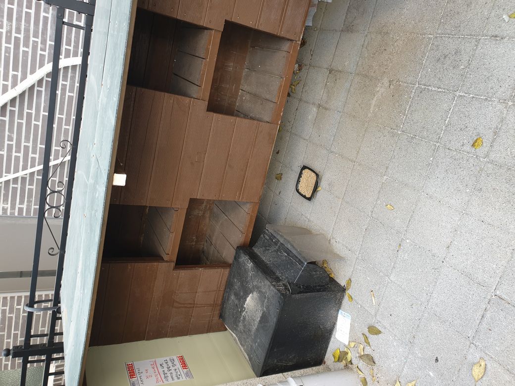 한쪽 출구를 고양이집으로 시공해 막아버렸습니다