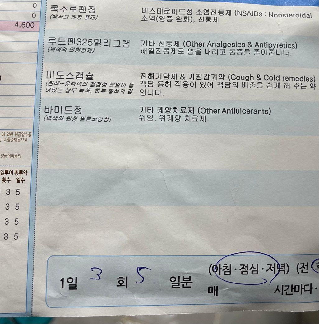 발열 두통 근육통 설사 가래가 번갈아 오는게 아니라 한번에 옵니다. 무슨약을 추가로 먹으면 좋을까요