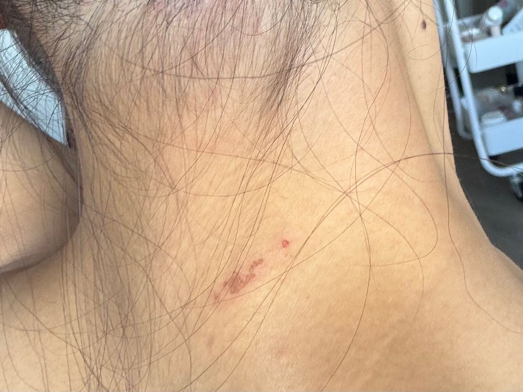 어제부터 좀 간지러워서 생각없이 긁었는데 동그란 모양으로 딱지가 났네요 혹시 대상포진일까요? 욱신욱신 하거나 열이 난적은 없어요