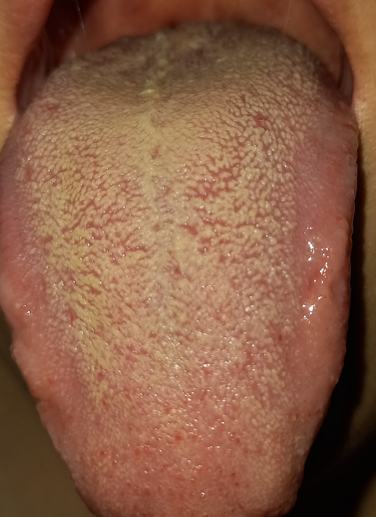 질문자님의 증세로 볼 때 현재 구강 건조증으로 인한 백태 증상을 완전히 배제하기는 어려울 것으로 사료됩니다. 근처 의원에 가셔서 의사의 진료를 받아 보시기 바랍니다. 감사합니다.