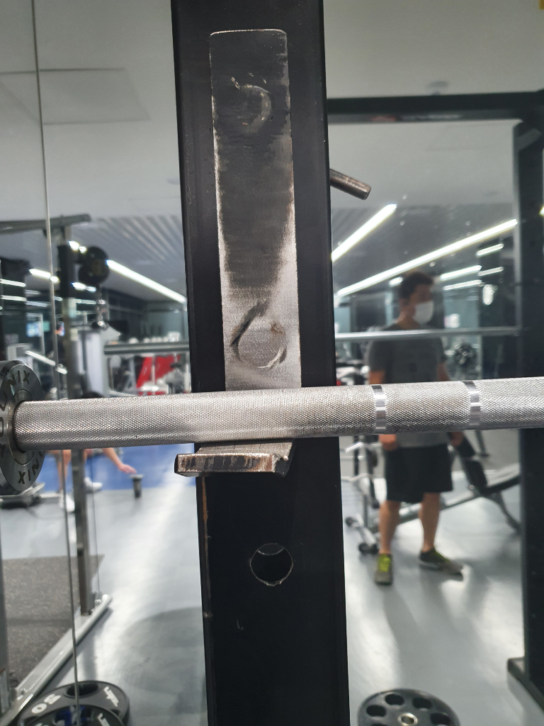실수로 잘못 댔는지 바벨 받쳐주는 J컵(?)이 휘어서
