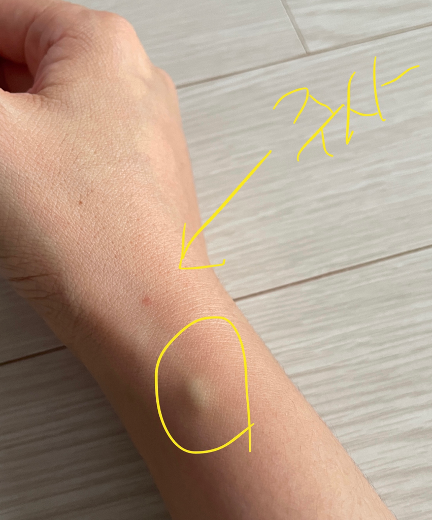 그런데 어느날 보니 혈관이 저렇게 볼록하게 튀어나와있고 주사바늘이 있었던 혈관쪽은 길쭉하게 이물감이 아직남아있습니다