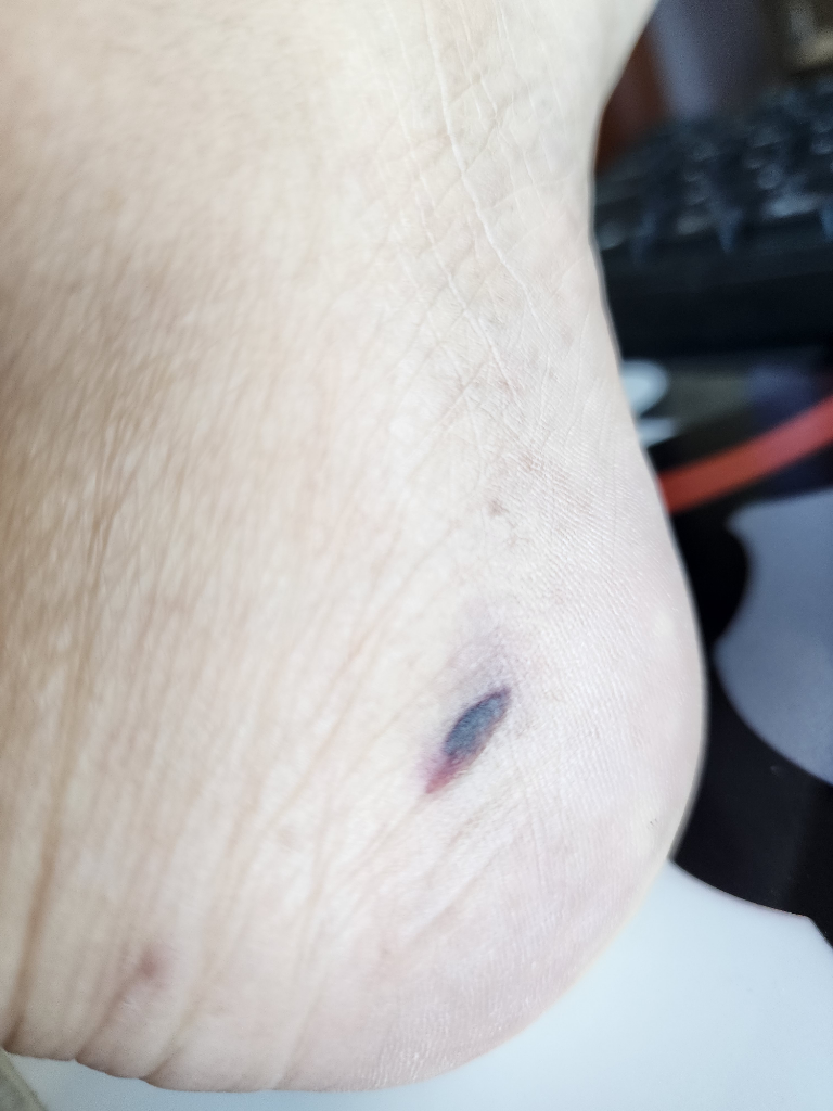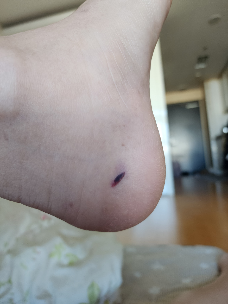 인지하지 못하신 충격으로 인해서 피부 내부에 출혈이 고이신 상황입니다.