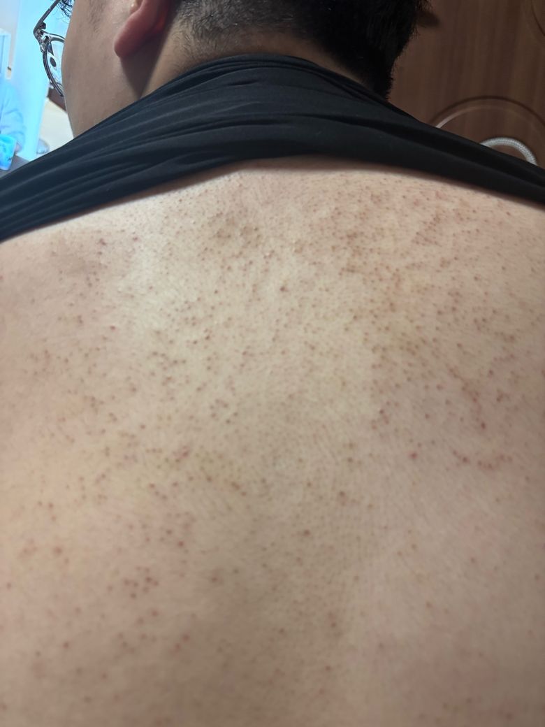 등 여드름(색소침착) 의심됌, 피부에서 갈색이깔이 나옴