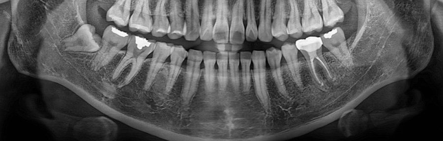 수평매복 사랑니 입니다. 사랑니 뽑는 수술할 때 사랑니를 부수고 덮고 있는 뼈도 삭제해야 합니다. 또한 사랑니 뿌리끝과 신경관이 맞닿아 있어 드물게 감각이상이 올 수도 있지만 발치해야 합니다. 그냥두면 바로 앞 어금니 뒤쪽이 상하게 됩니다.