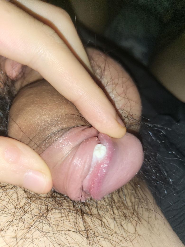 귀두 아래쪽에 하약색 딱딱한 딱지가있습니다