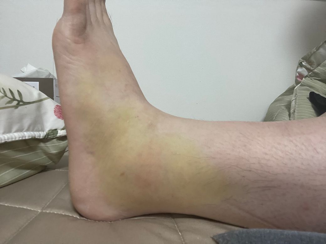 멍든 부분에도 타박상이 있으셨을 확률이 높으며, 수상당시 발목이 꺽이셨을 가능성도 있습니다.
