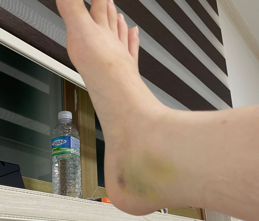 근데 몇 일 후에 발등에는 멍이 안들고 오히려 발 양옆에 멍이 들고 멍든 부위가 욱씬욱씬 아프더라고요