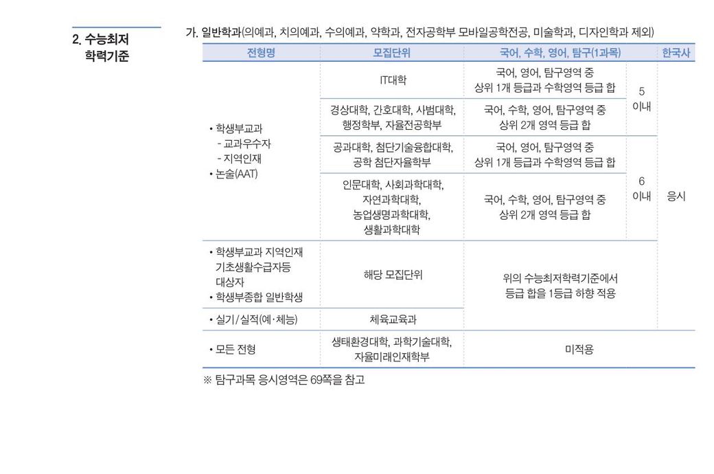 최저학력 기준이 2합5라고 알고있는데 반영하는 과목을 알고싶습니다.