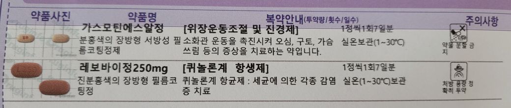 레보바이정, 가스모틴에스알정을 처방받으셨군요.