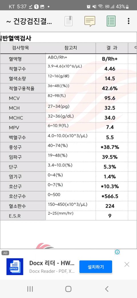 중성구와 호산구, 호산구수에 *표시가 있고 재검소견이 기재되어서 예약은 하였는데 불안해서 문의드려요