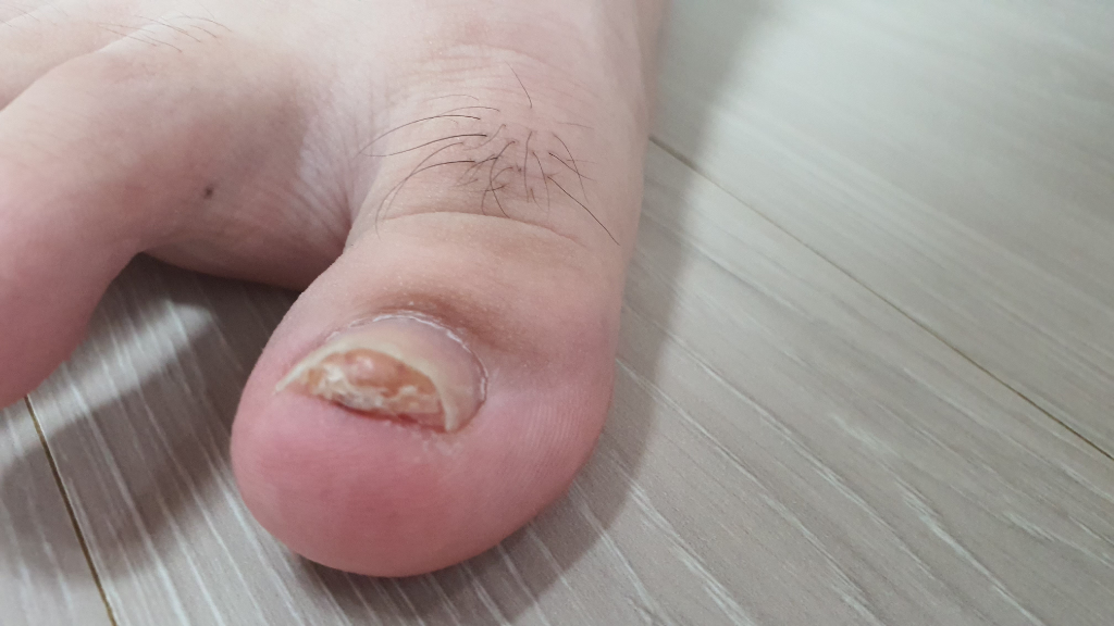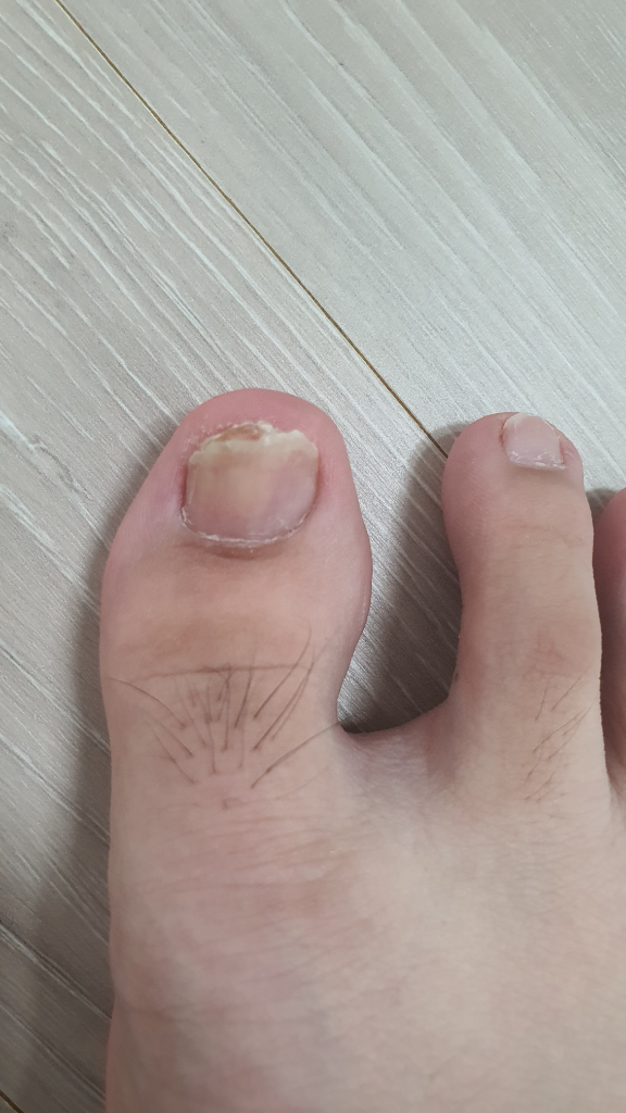 조갑하외골증 수술 후 발톱 밑에 두꺼운 층이 하나 남았습니다