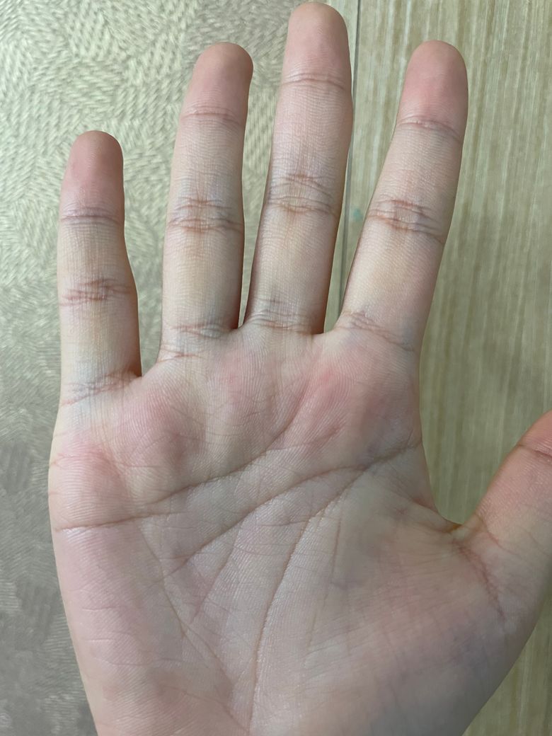 손 및 손가락의 모양을 토대로 특별히 건강 상의 이상 및 질병 등을 의심할 수 없습니다. 인체는 양측이 완벽하게 대칭적이지 않으며 차이가 있을 수 있는 만큼 이상 소견으로 보기도 어렵습니다. 크게 신경 쓸 것 없어 보입니다만 이차적인 조언을 구하시고자 한다면 정형외과에서 진료 및 검진을 받아보시길 바랍니다.
