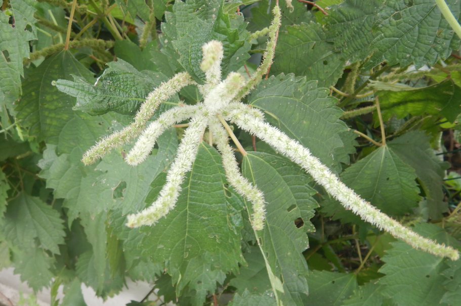 좀깨잎나무의 잎은 보통 뾰족하고 톱니가 있는 가장자리를 가지며, 대체로 심장형이나 타원형의 모양을 띱니다. 잎 표면과 가장자리에 작은 털이 많이 분포해 있습니다. 이 식물의 가장 두드러진 특징 중 하나는 잎과 줄기에 있는 미세한 털입니다. 이 털은 촉감이 있을 때 피부에 자극을 줄 수 있으며, 이는 방어 메커니즘의 일부로 작용합니다. 좀깨잎나무의 꽃은 작고 흰색 또는 녹색을 띠며, 보통 줄기의 꼭대기나 잎겨드랑이에 모여 핍니다. 꽃은 매우 작고 섬세한 구조를 가지고 있습니다.