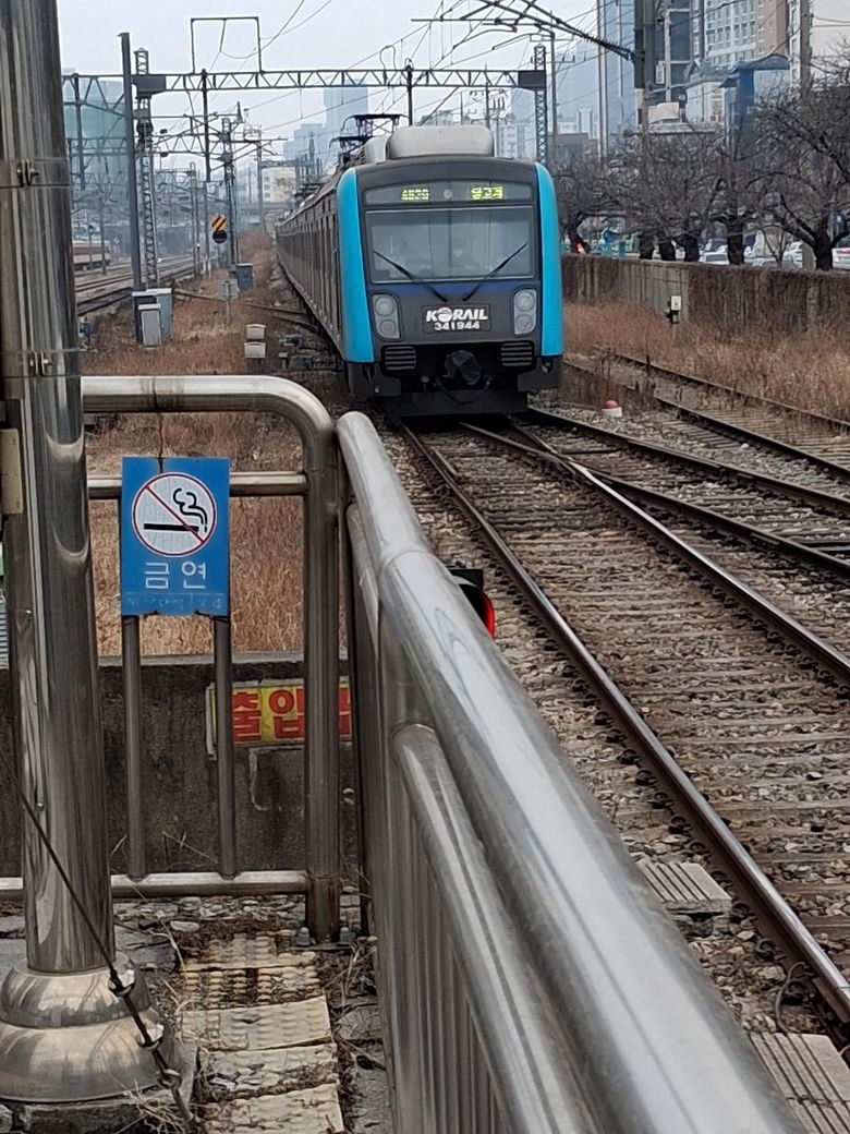 또 펜스도 마찬가지입니다. 주인공이 지하철이어야 하는데 사진의 절반이상을 펜스가 차지하고 있어요