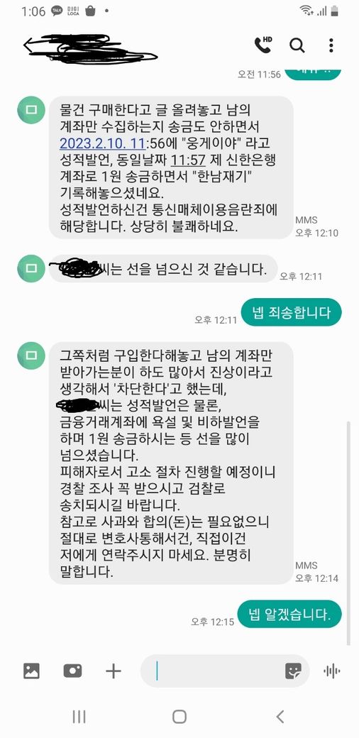 다만, 통매음 관련해서는 "한남재기"표현은 성적수치심이나 혐오감을 일으키는 것으로 통매음 성립가능성이 있겠습니다.