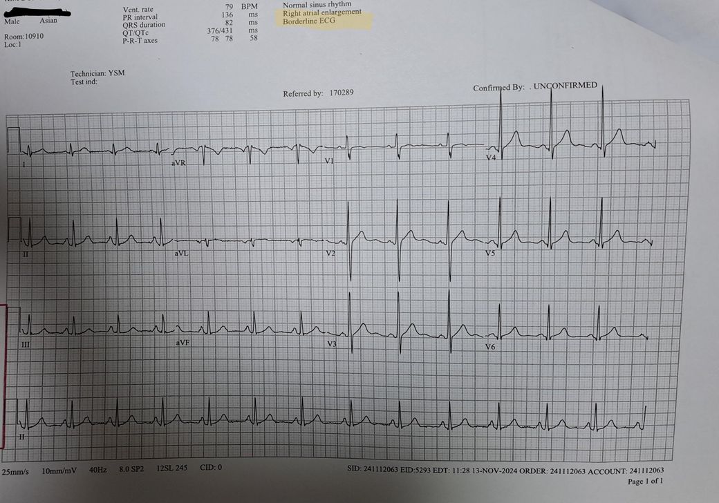 심전도에 right atrial enlargment 라고 되어 있는데 이상이 있는 건가요? 아니면 그냥 정상인 건가요? 잘 몰라서요..