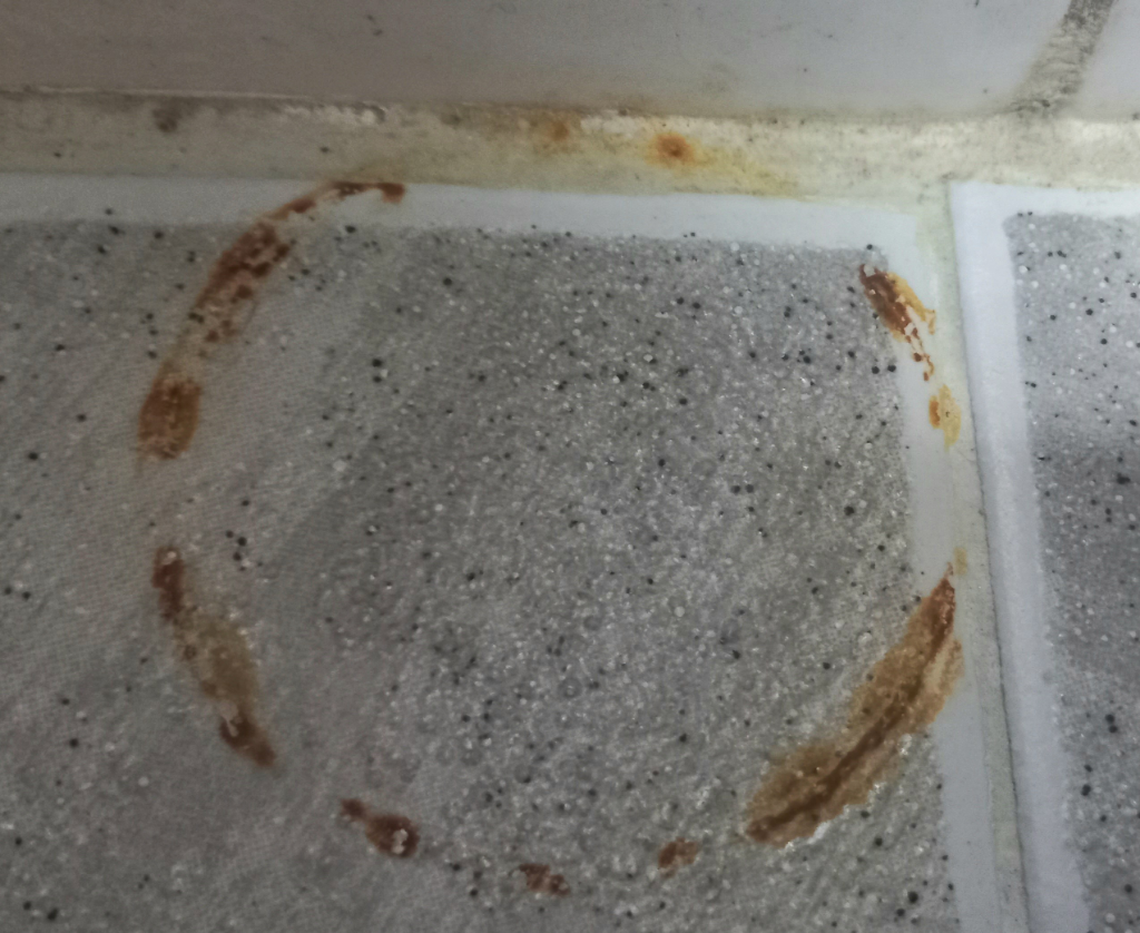 처음엔 녹물인줄 알고 물때 벗겨내듯이 닦아보고