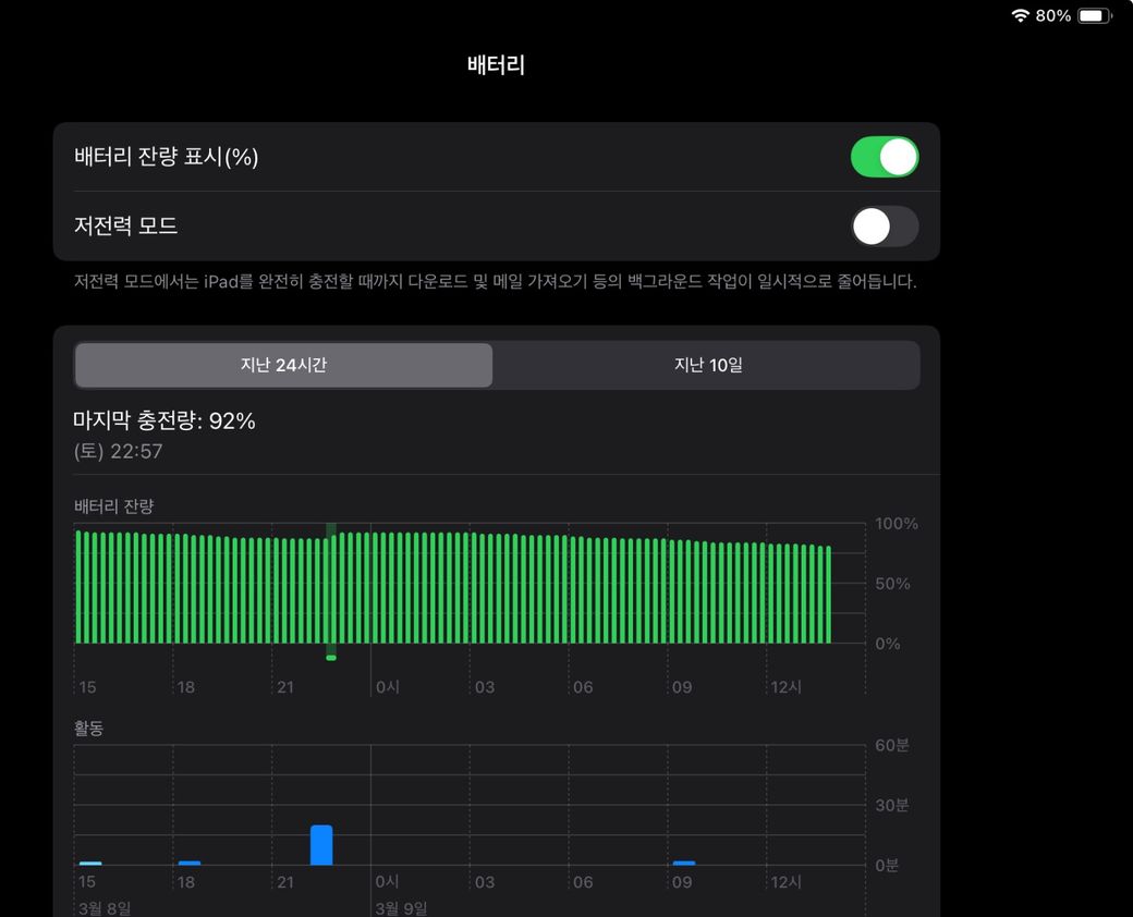 설정=배터리=배터리성능상태최적화된배터리충전 이없으면 아이폰에만 설정기능이있고 아이패드에는 설정이없는거에요 답변 도움되셨기를 바랍니다