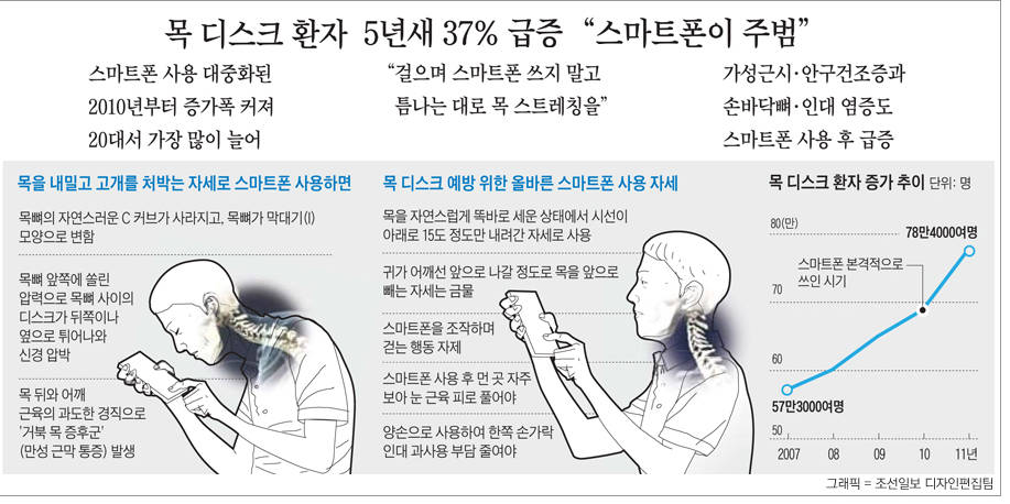 그리고 가장 중요한 것은 스마트폰 사용입니다. 스마트폰을 눈 높이보다 약간 낮게하고 사용하는 것이 중요합니다.