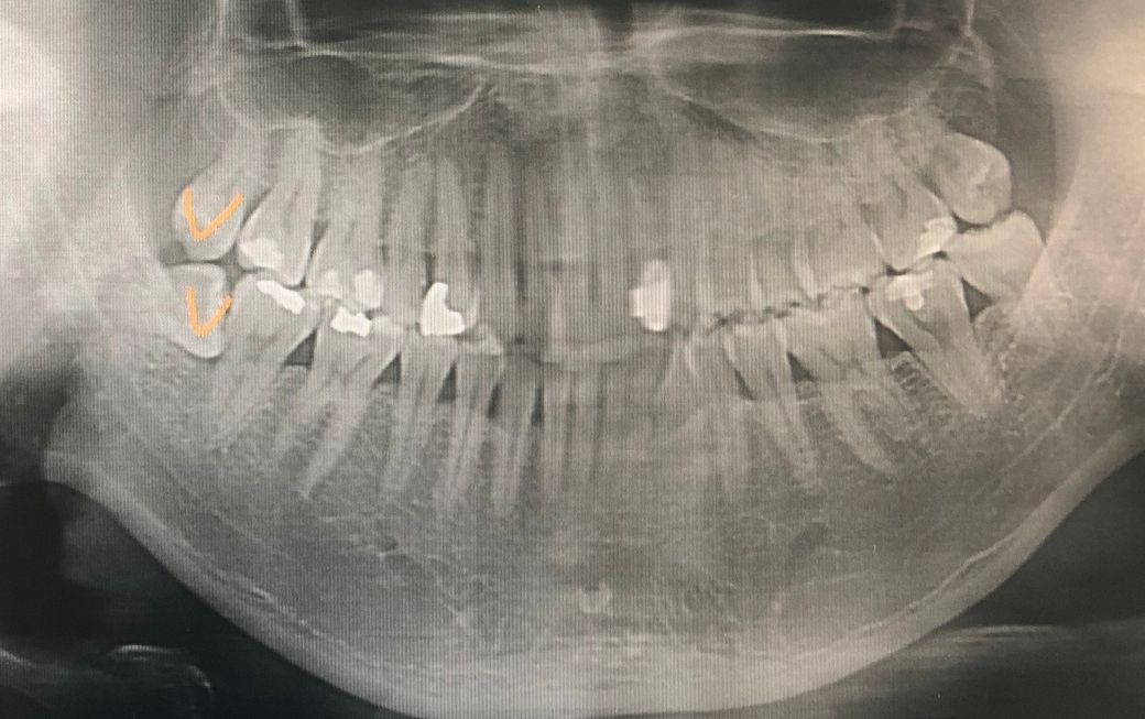 사랑니 뺄려고 찍은 사진인데 뭔가 잇몸쪽에 선이 직선으로 있어야 할거같은데 울퉁불퉁 한거같아서 걱정인데요..안좋은 상태인가요?