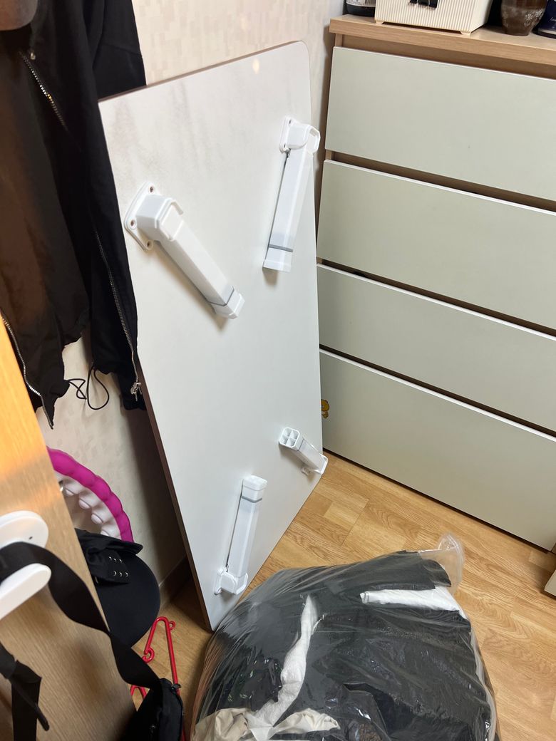 안녕하세요. 서랍장 앞에 앉아있는데 이 6인용 상이 제가 앉아있는 쪽으로 기울면서 보이시는 상 윗쪽 모서리와 제 왼쪽 관자놀이가 부디쳤어요.