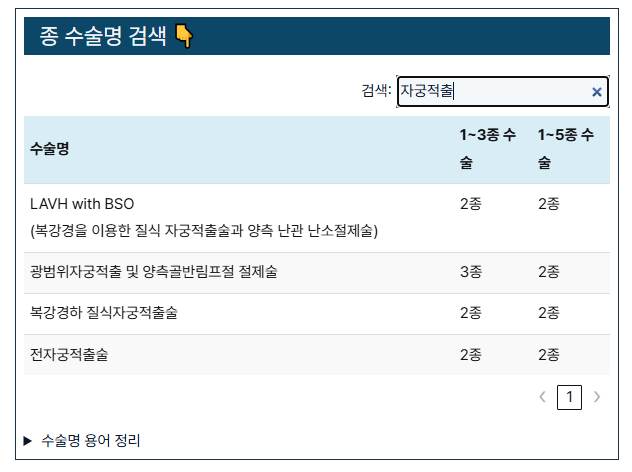 자궁근종으로 자궁적출술, 양쪽 나팔관 절제술, 한쪽 난소 절제술을 복강경으로 시행한 경우 일반적으로 3종 수술에 해당하는 경우가 많습니다.