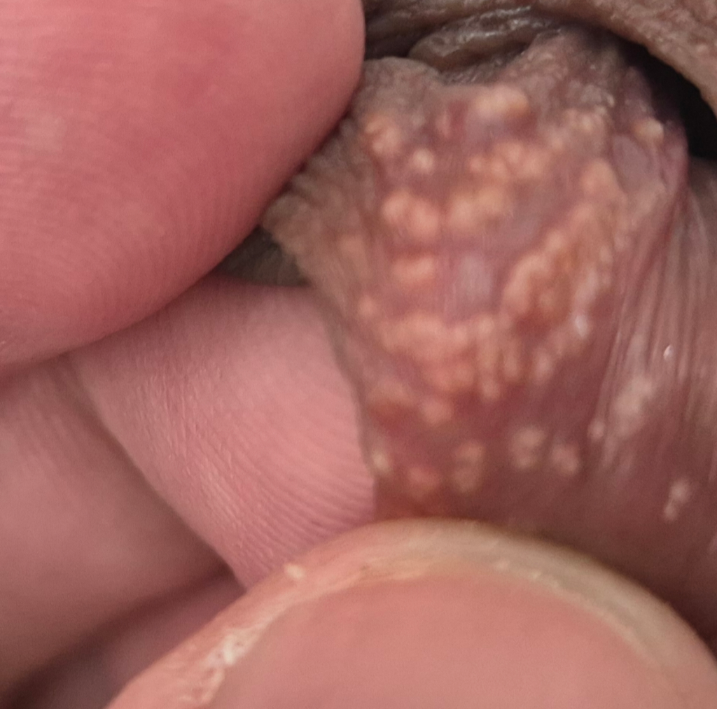 포다이스반이라 추정됩니다. 다만 최근 변화가 느껴지는 상황이라면 비뇨의학과를 방문해 확인해보시는 것이 좋겠습니다.