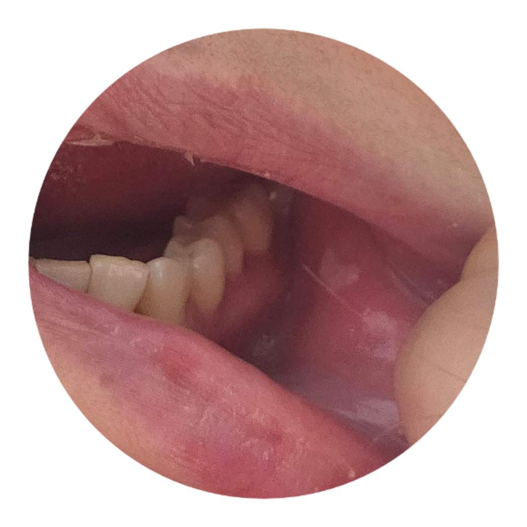 해당 부위는 구방 점막 조직에서 떨어져 나온 가피로 보입니다.