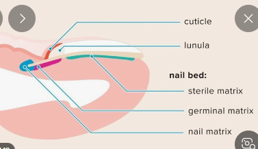 손톱은 아래 그림에서 파란색에 해당하는 nail matrix에서 만들어집니다. 이 nail matrix에 손상이 생기지 않으면 손톱이 만들어지는데는 전혀 지장이 없습니다.