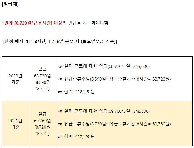 21년도 최저임금에 따른 일급제 근로자의 유급주휴수당 지급이 궁금합니다.