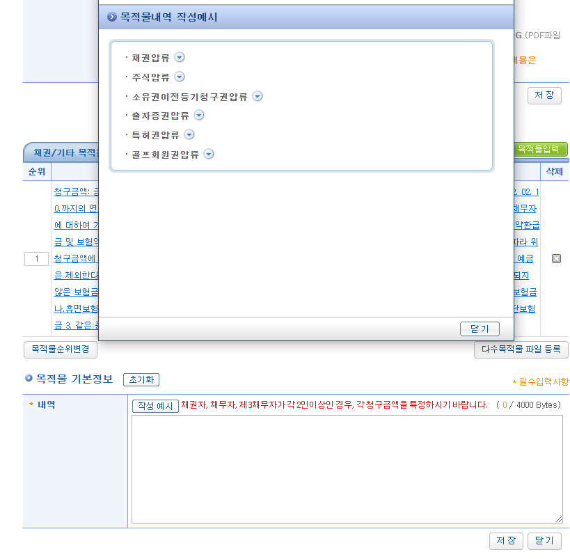 공제조합에 채권압류 및 추심명령 신청 시 '채권/기타 목적물' 포맷을 무엇으로 해야되나요?