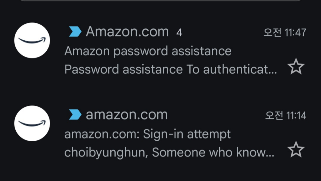 아마존에서 로그인시도 있었다고 왔는데 답장 눌러서 상대 메일 주소 확인해봐도 의심스러운 부분이 없습니다