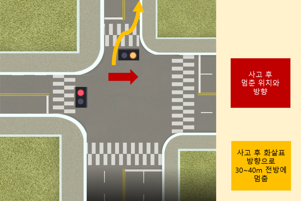 일반적인 황색점멸과 적색점멸 신호 사고의 경우 2:8정도로 적색점멸 차량이 가해 차량이 됩니다.