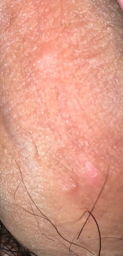 여자친구와 관계를 자주하는데 성기밑에 핏줄? 전립선? 쪽에 이렇게 엄청 작긴하지만 살이 까진 거 같은데 혹시 이고 헤르페스나 매독 등 성병일 가능성이 있을까요 만져도 아프거나 가려운건 없습니다