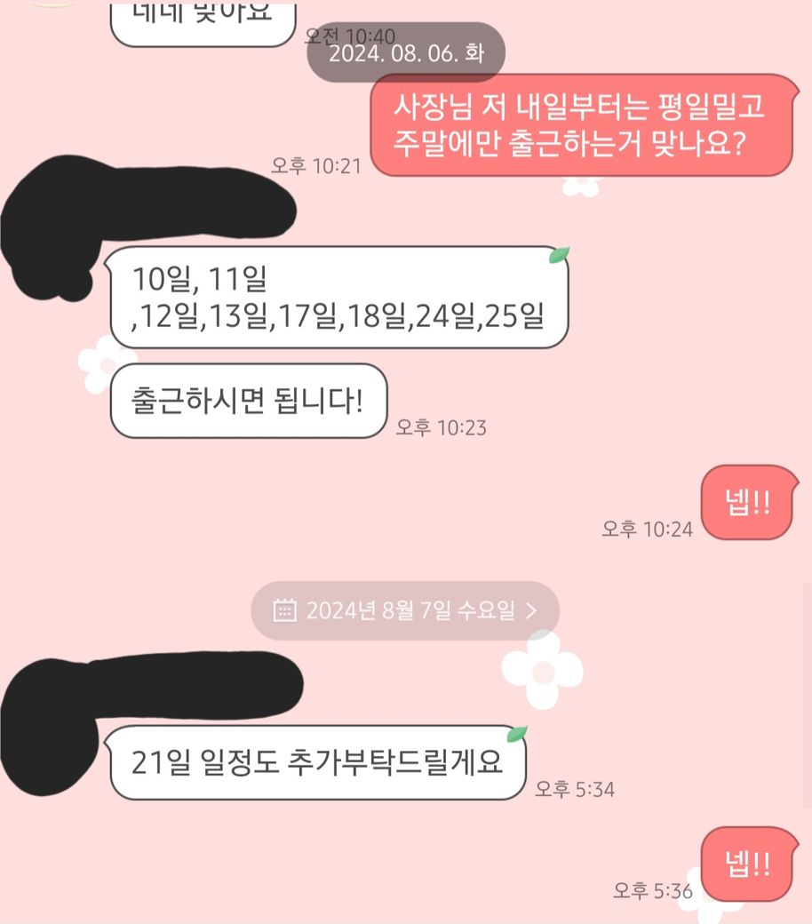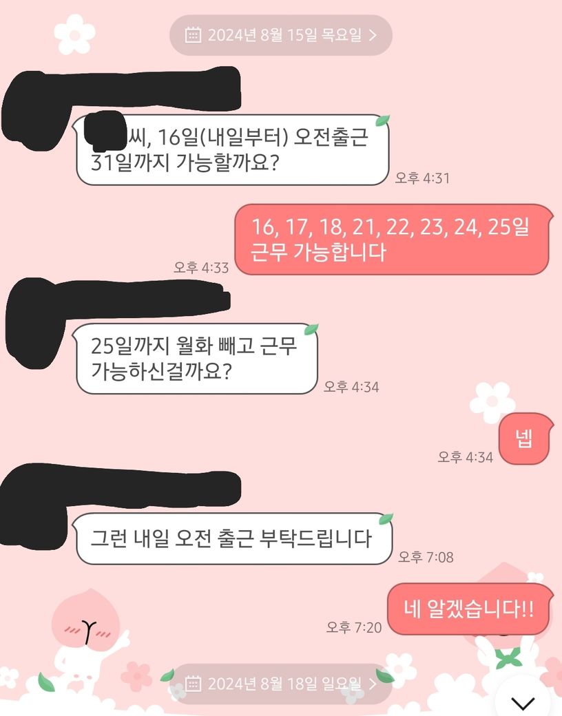 같이 일한 다른 알바생들, 전부터 단기로 했던 알바생들도 다 계약서 안쓰고 주휴 못 받았다네요.