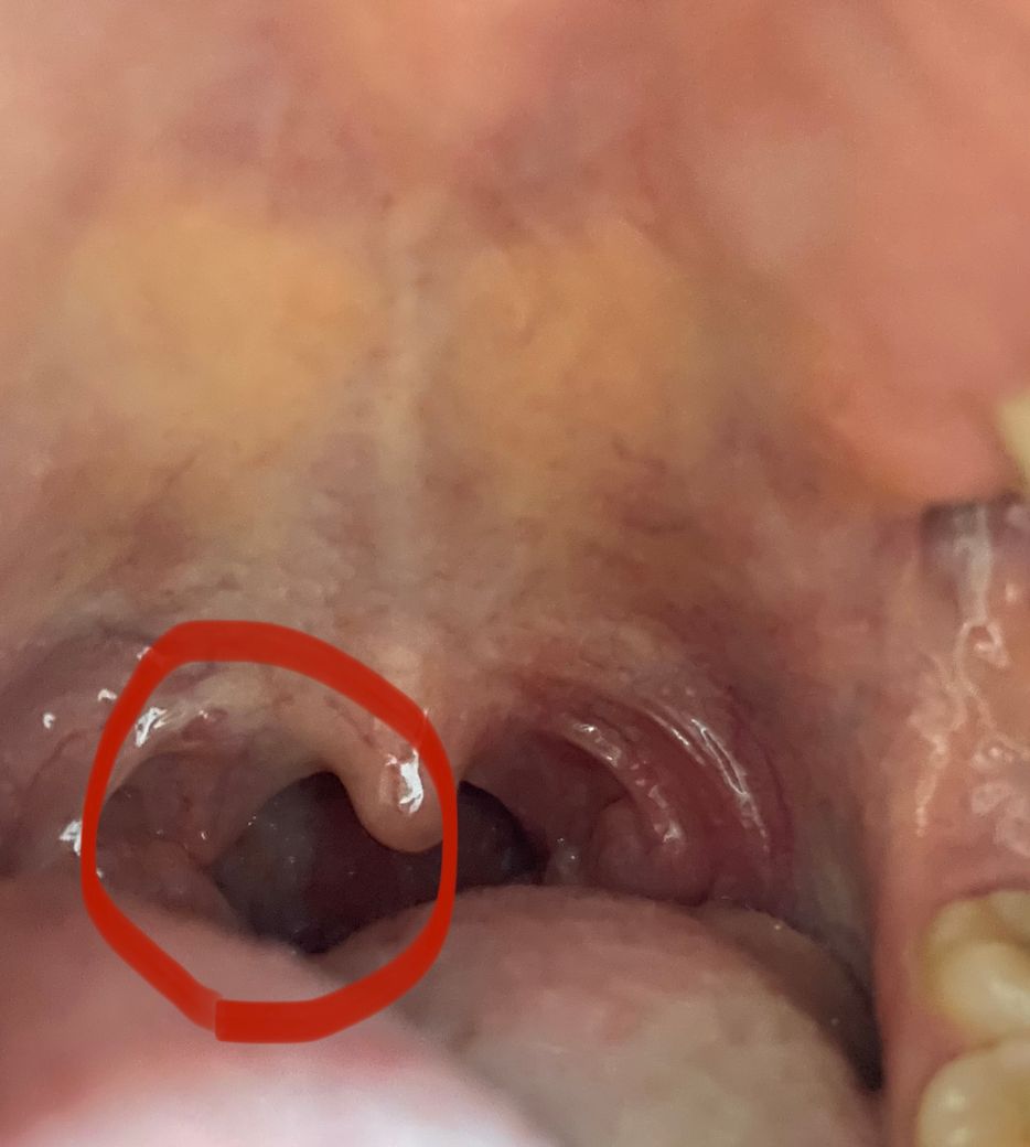입 안에 저 동그라미친 곳 염증인가요? 병원 가봐야할까요? 아프진 않은데 우연히 보게됐어요. 입 안을 본 게 처음이라.. 원래 정상인가요?